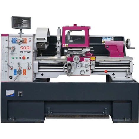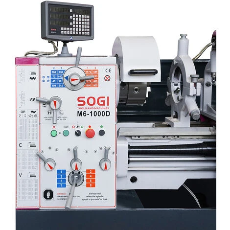 Il tornio parallelo SOGI M6-1000D è una macchina professionale pensata per la lavorazione industriale di materiali metallici, leghe derivate e molto altro in grado di effettuare torniture (sia coniche che cilindriche), filettature (sia Metriche che Whitworth), forature, alesature, profilature ecc.