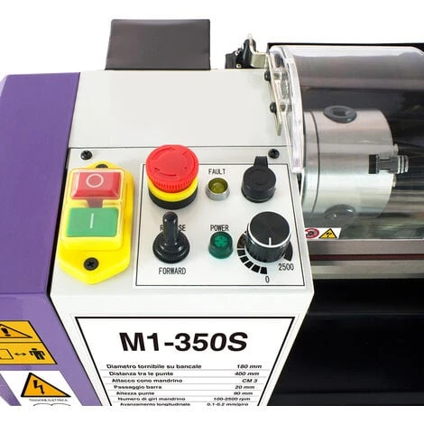 In accordo con la normativa vigente in materia di sicurezza, il tornio M1-350S è corredato di tutti i dispositivi di protezione necessari a preservare la salute dell’operatore e dell’ambiente circostante (schermi protettivi in policarbonato e/o lamiera, interruttore di emergenza).