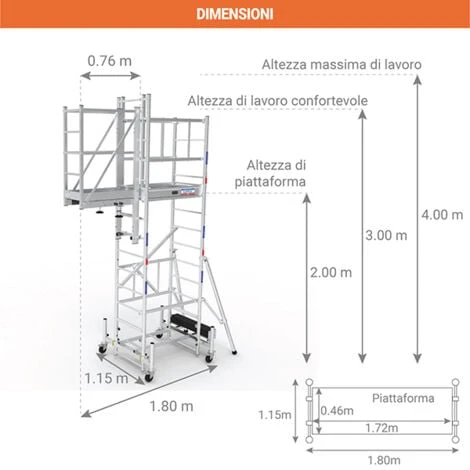 – Superficie utile di lavoro in esterno di 0.76m x 0.46m.