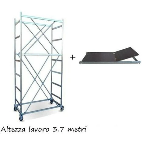Questo ponteggio con ruote è stato progettato per un uso semi-professionale ma viene anche usato da professionisti. Il ponteggio o comunemente detto trabattello, offre la possibilità di effettuare lavori di restauro o impiantistico e di manutenzione ad una altezza massima di lavoro consentita di 8.2 mt.