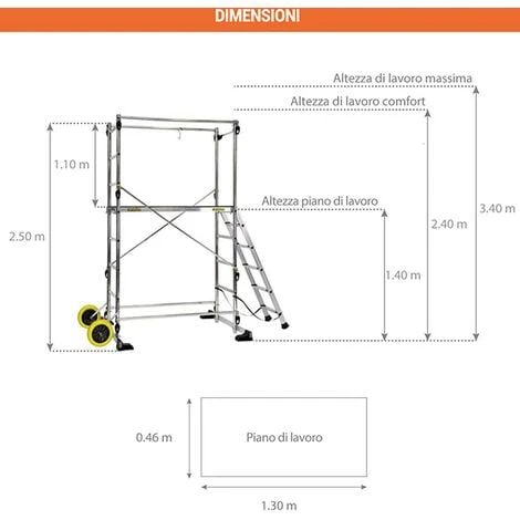 – Resistenza del trabattello testata fino a 300kg secondo la normz E 85-200.