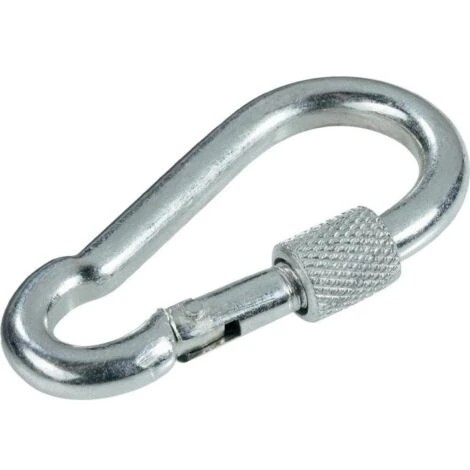 Moschettone In Acciaio Zincato Con Chiusura A Vite Tipo Pompiere Dotato Di Vite Sicurezza Per La Chiusura.ideale Per Amanti Dell’arrampicata Ma Anche Per Tutti Quei Lavori In Cui Si Riciede La Massima Sicurezza, Come Muratori E Imbianchini Per Lavori Per Esterni Dove è Richiesta La Sicurezza Sul Cantiere.dotato Di Vite Di Bloccaggio Per Evitare L’apertura Del Moschettone.misure Disponibili: 100 Mm
