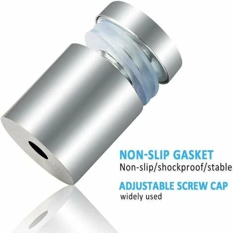 Composizione Struttura Ogni portavite pubblicitario è composto da due dischi in silicone, una piccola vite, un’asta a vite, una base e il tubo di espansione in plastica. Il diametro della copertura dell’asta filettata è di 19 mm, l’altezza della copertura dell’asta filettata è di 5 mm. La piccola vite è di 19 mm, l’altezza della base è di 20 mm. Sono molto facili da montare a parete.