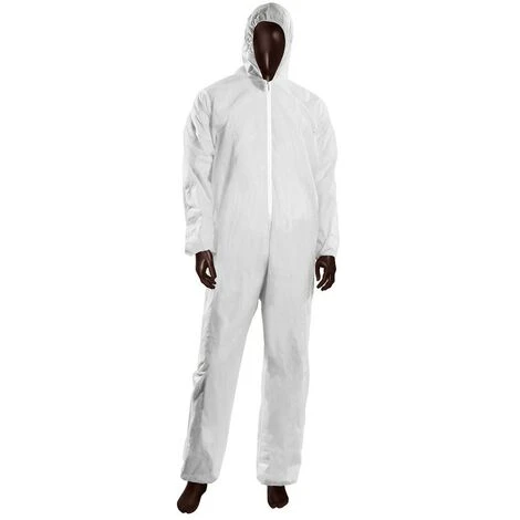 Per salvaguardia del corpo da rischi di lieve entità. Completa di cappuccio, chiusura con cerniera. Elastico a polsi, caviglie, cappuccio. Marcatura CE, standard EN ISO 13688:2013. Categoria di protezione I (rischi minimi), assicura igiene e protezione. Peso 40 gr/mq. Prodotto non sterile, non impermeabile. Imbustata singolarmente.