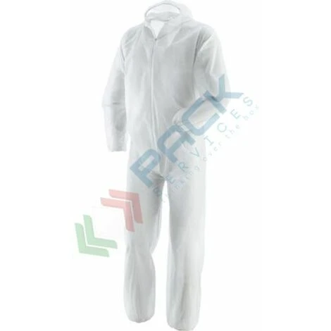 Tuta usa e getta da visitatore 100% in TNT di polipropilene (PP). Tuta in tessuto non tessuto di polipropilene 30 g/mq realizzata con chiusura con zip davanti e cappuccio. Lunghezza 160 cm, petto 132 cm. Tuta con cappuccio unisex con elastico ai polsi e alle caviglie. Indicata per proteggere da polvere, liquidi ed altre sostanze, progettata per garantire la massima igiene negli ambienti di lavoro. Taglia unica. Colore bianco. Venduto singolarmente. Prodotto unisex, ideale sia per uomo che per donna. Abbigliamento da lavoro per uso civile per la protezione da rischi minimi come polvere, schizzi d’acqua, vernice ecc…