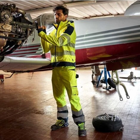 Pantalone ad Alta Visibilità dotato di 2 ampie tasche anteriori, tasca laterale porta utensili, tasca laterale multifunzionale con portabadge a scomparsa.