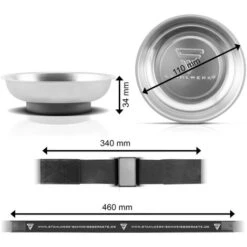 Indispensabile in ogni officina. Il vassoio magnetico e il braccialetto magnetico, robusti e antiruggine, consentono di riporre in modo sicuro viti e piccoli pezzi.