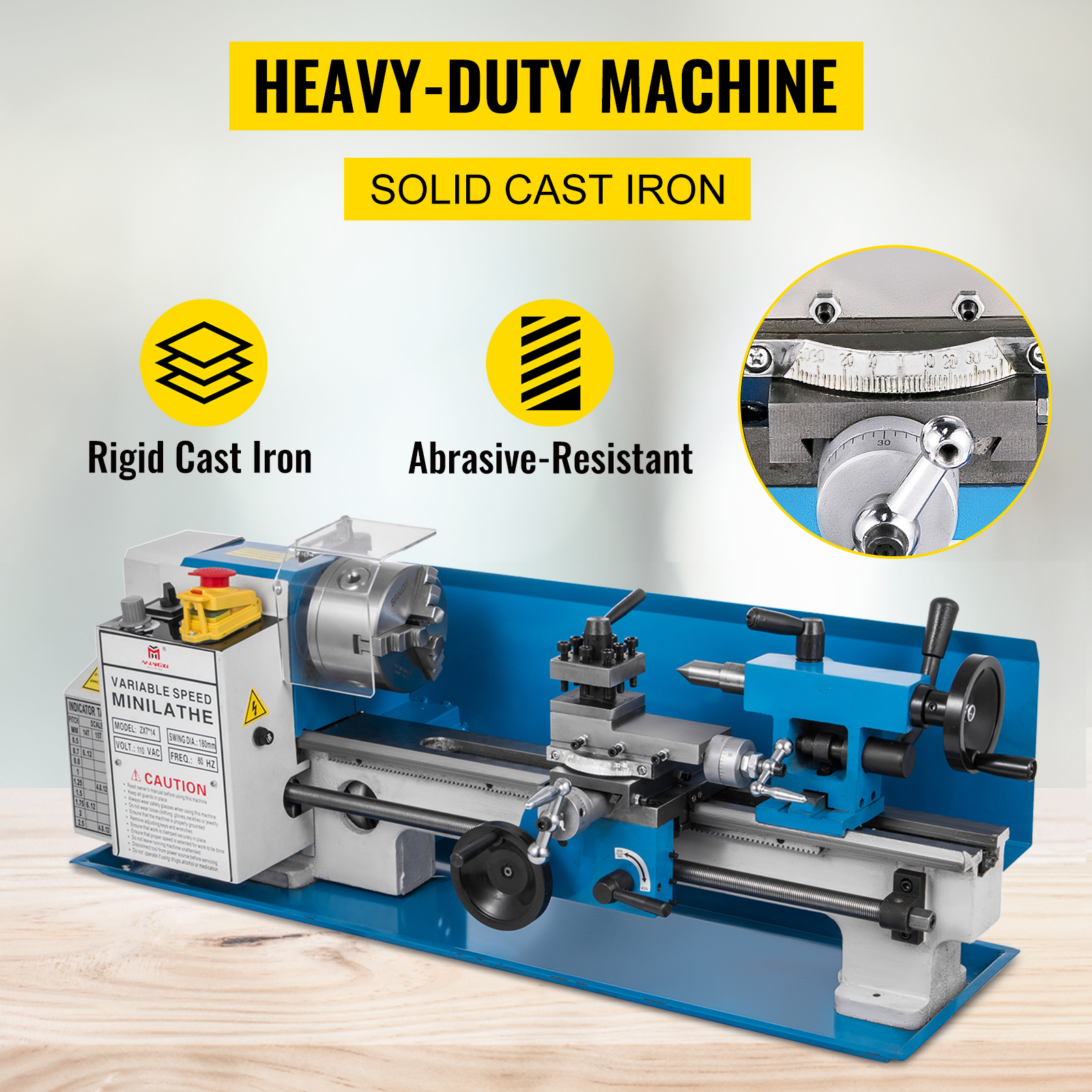 - Costruzione Robusta: il mini letto del tornio in metallo è realizzato in ferro di alta qualità. Dotato d’ingranaggi in nylon, questo tornio è resistente all’usura, durevole, con una rotazione più precisa. Potenza del motore da 550 W. Il paraspruzzi a tutta lunghezza offre la massima protezione.