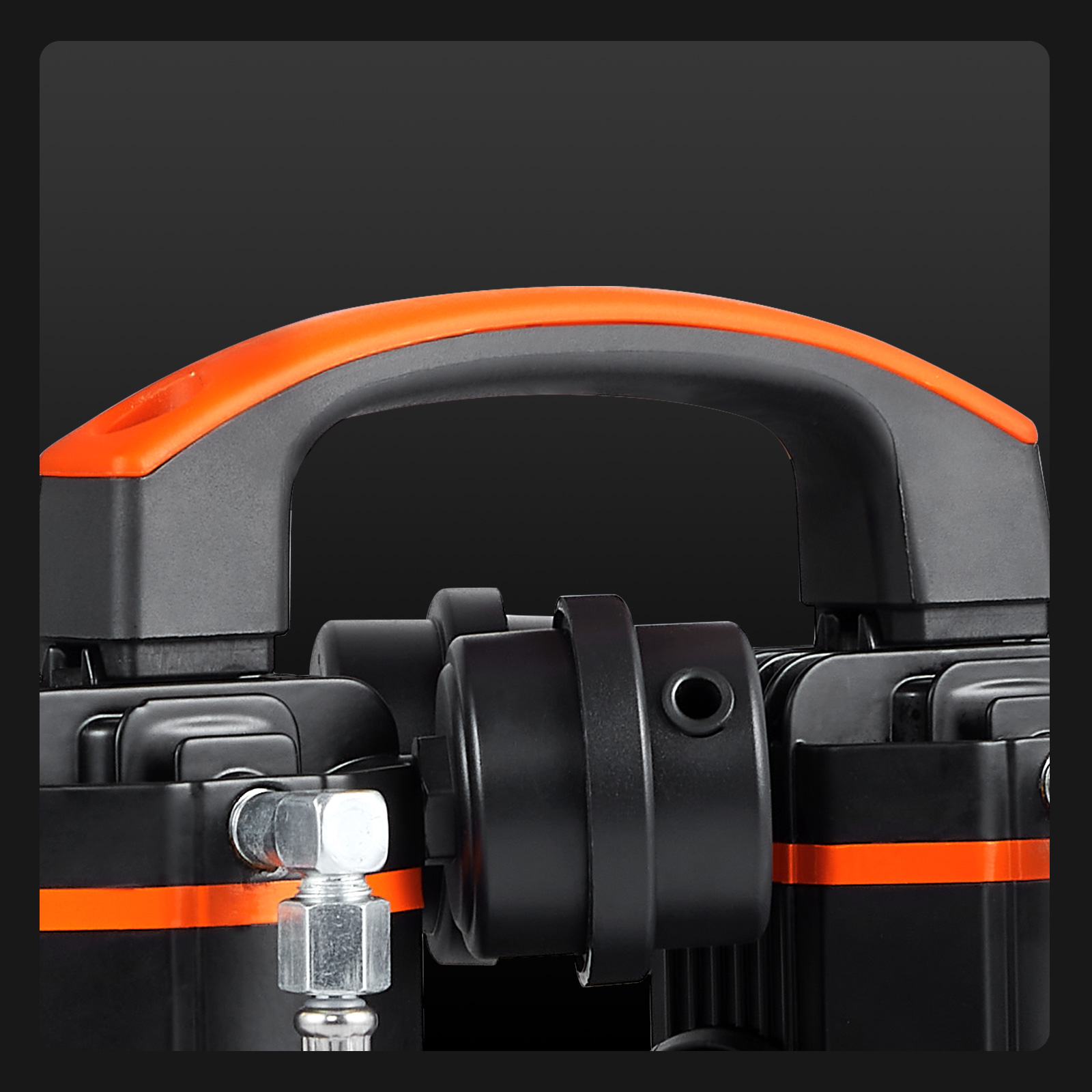 Questo compressore d’aria leggero e portatile è dotato di una maniglia ergonomica che facilita lo spostamento del compressore d’aria.
