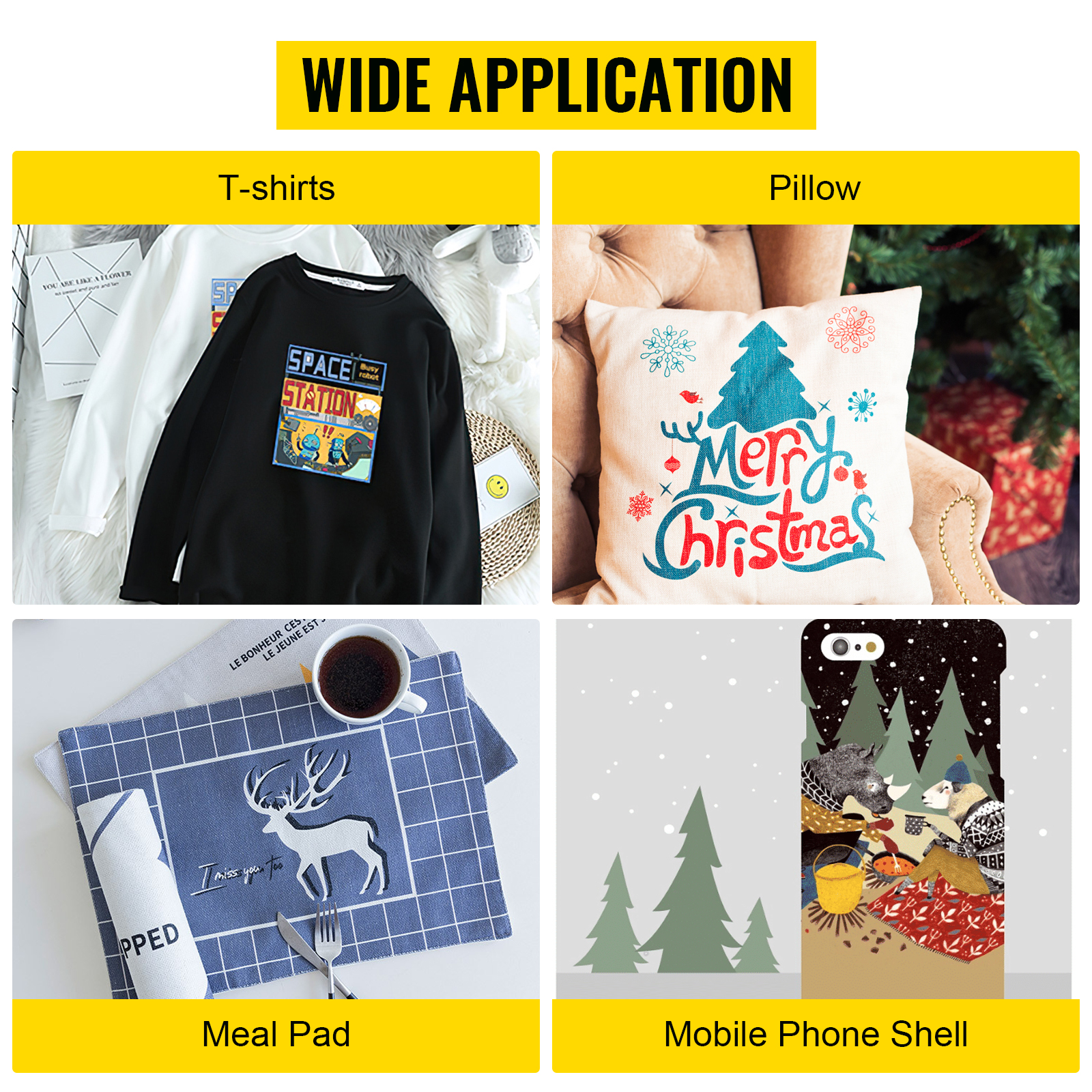 - Utilizzo Multiplo: la termopressa VEVOR 12″ x 15″ è versatile per trasferire immagini su camicie, felpe, pantaloni, cuscini, borse, sottopiatti, piastrelle di ceramica. Un’ottima opzione per usi fai-da-te o piccoli affari, realizzando le tue ispirazioni nella vita di tutti i giorni!