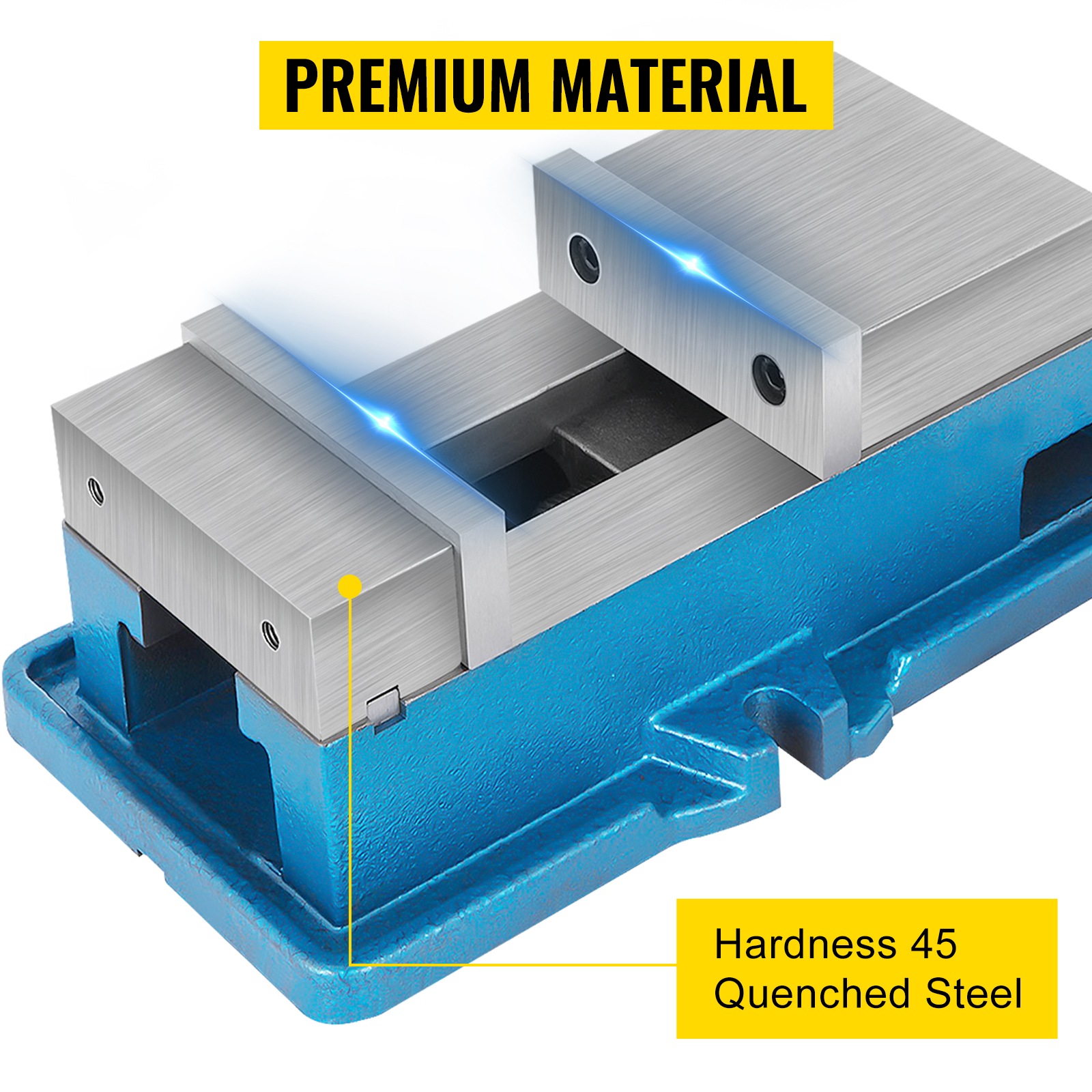 - Struttura di Qualità Premia: la mascella della morsa da banco è realizzata in acciaio 45#. Dopo l’estinzione ad alta frequenza, la resistenza all’usura della ganascia è migliorata e la durata è prolungata. Il corpo della morsa è forgiato in ghisa di alta qualità HT250 con buona tenacità, elevata resistenza e durata.