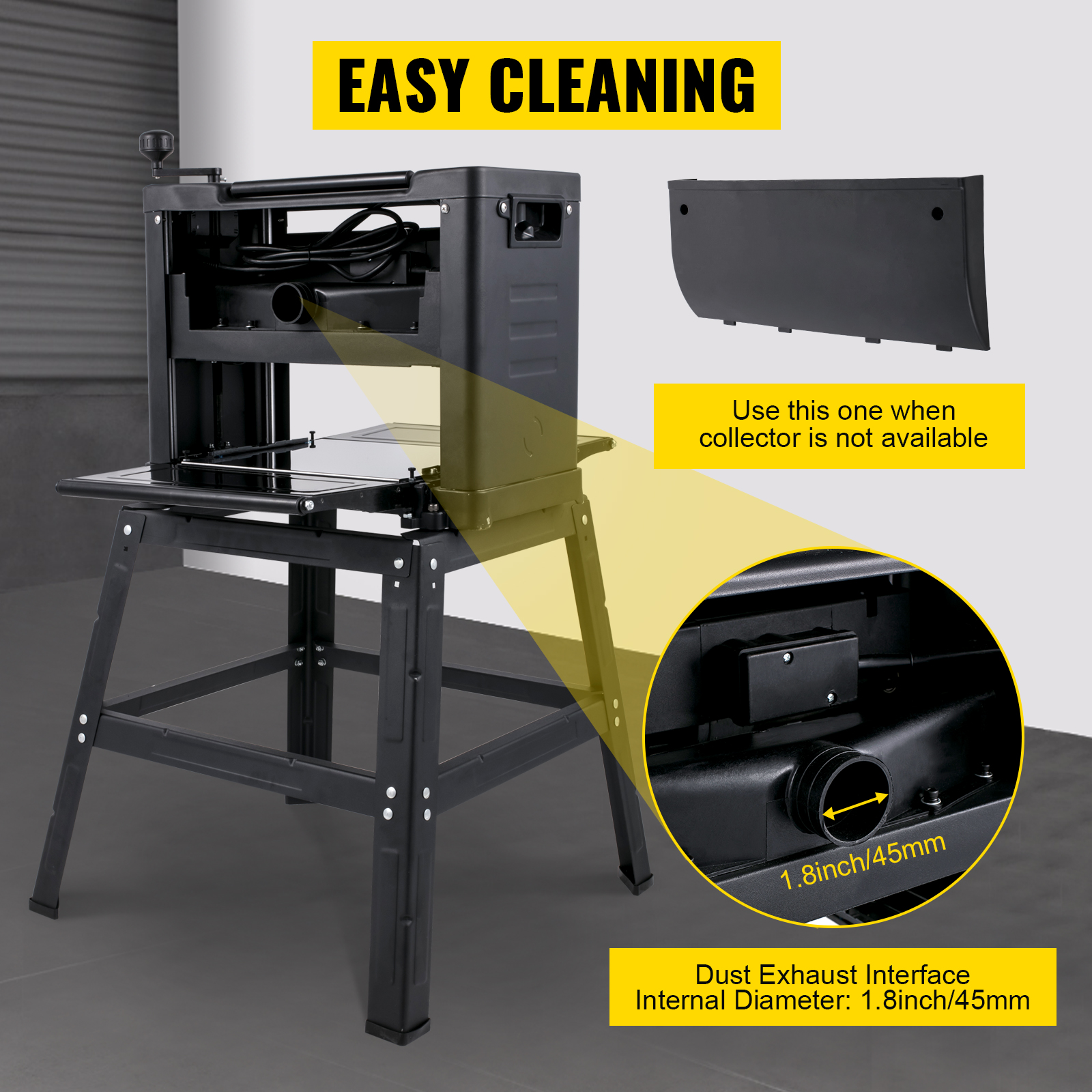 - Supporto per Impieghi Gravosi: esiste un supporto per impieghi gravosi per un fissaggio più forte della pialla per legno. Questa pialla da tavolo portatile è compatta e salvaspazio con un supporto rimovibile e piastre di estensione pieghevoli. Le scanalature in ABS su entrambi i lati sono progettate per una facile mobilità.