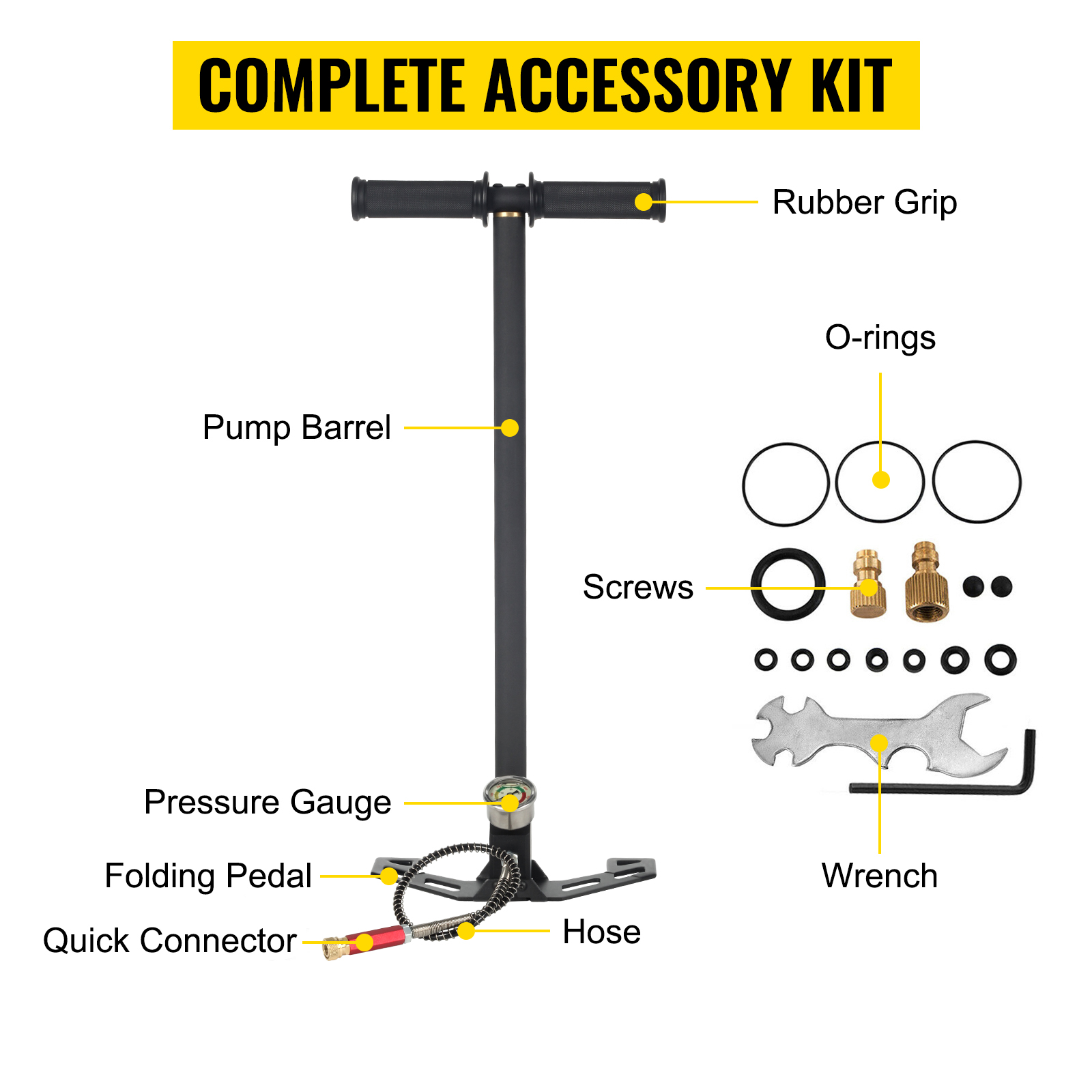 Con gli O-ring e altri accessori completi, la pompa per carabina PCP è adatta per la maggior parte delle marche di pistole, fucili e fucili ad aria compressa PCP.