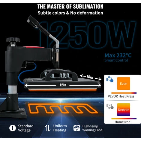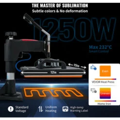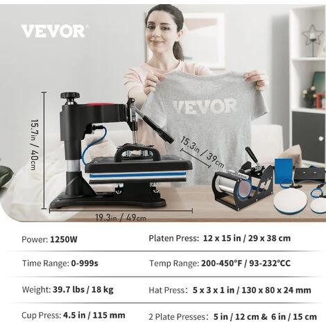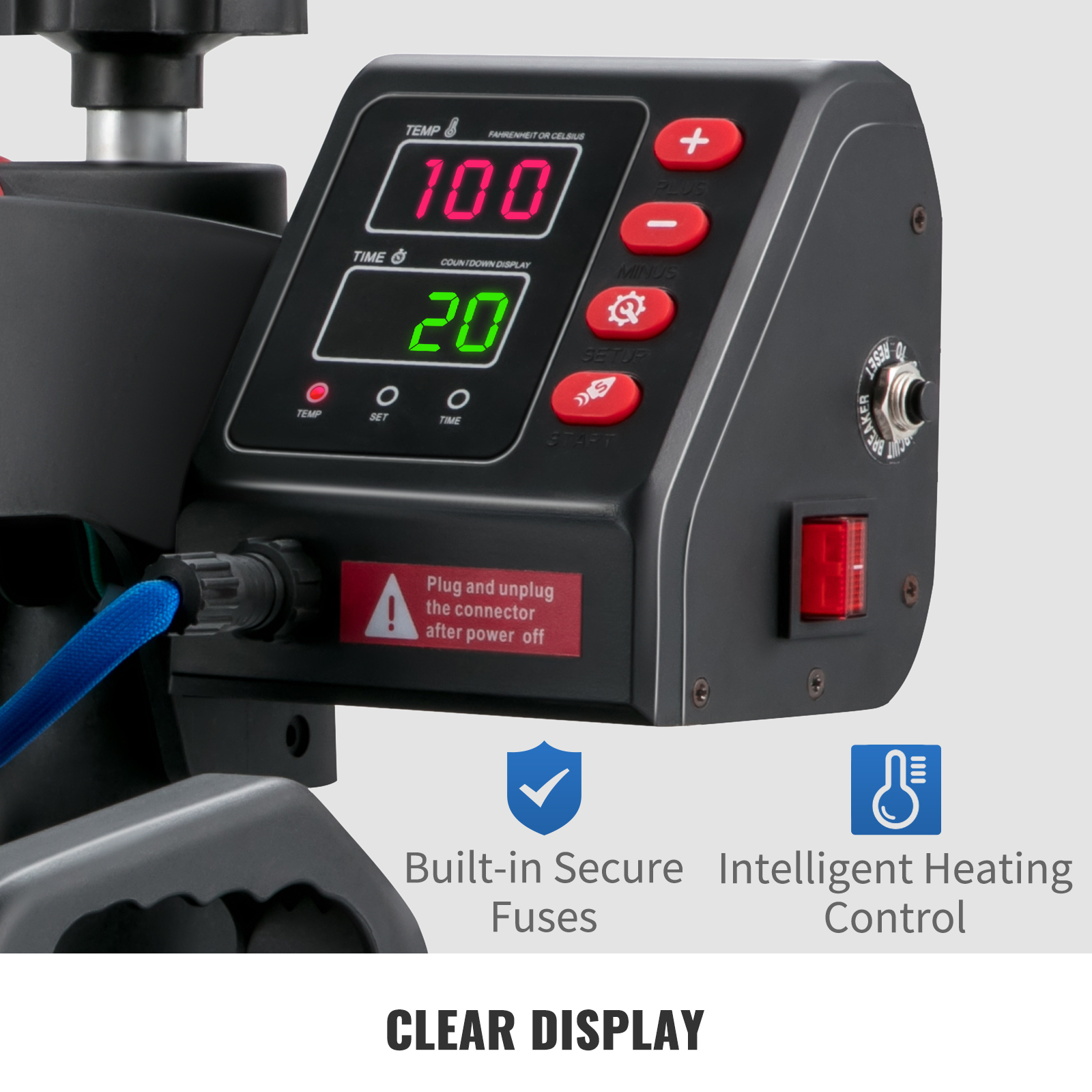 - L’Apice della Versatilità: questa pressa termica a conchiglia 5 in 1 di VEVOR è dotata di molteplici accessori, pronti a mostrare le tue infinite idee trasferendo splendidi motivi su magliette, federe, cappelli, tazze, custodie per cellulari, collari per animali domestici, piatti in ceramica e ornamenti per le feste.