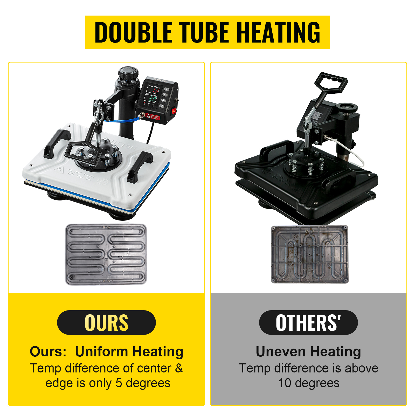 - Sistema di Riscaldamento Professionale: la più recente tecnologia di riscaldamento rapido a doppio tubo integrata distribuisce il calore da bordo a bordo in modo rapido e uniforme. Fino al 50% di miglioramento della consistenza della temperatura per un riscaldamento più uniforme e un migliore effetto di stampa della maglietta con cuscinetti isolanti a due strati!