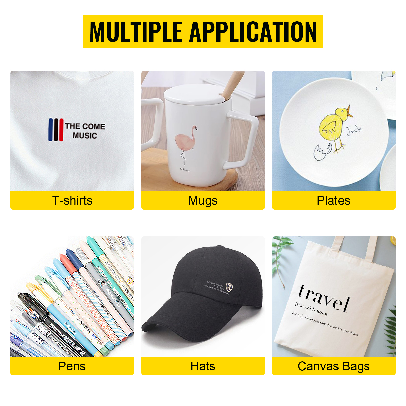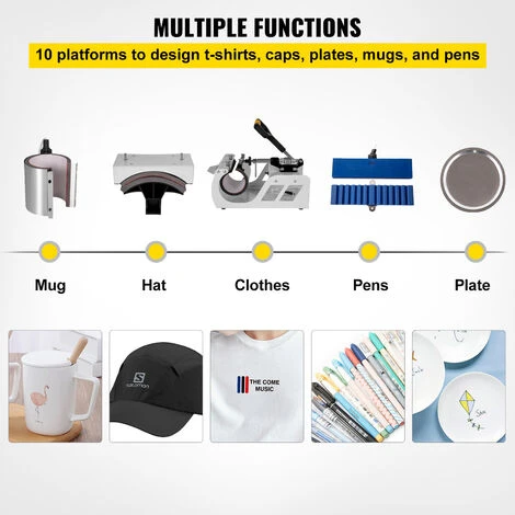 - Kit 10 in 1 con Stiratura a Penna: oltre al trasferimento su magliette, tazze, tazze, cappelli, questa pressa a caldo aggiunge la pressa a penna per stampare diversi motivi sulle penne. Un’ottima opzione per usi fai-da-te o per piccole imprese, realizzando le tue esigenze creative e personalizzate!