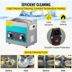- 【MATERIALE DI ALTA QUALITA’ SUS304】 – Dimensioni serbatoio: 3L/0,79 Gal; Potenza ultrasonica: 120 W; Potenza di riscaldamento: 100 W. Questa macchina pulitrice a ultrasuoni è costruita con robusto acciaio inossidabile 304, garantendo l’assenza di perdite d’acqua e una lunga durata. È disponibile un cestello aggiuntivo per ridurre la collisione tra oggetti appuntiti e il serbatoio.