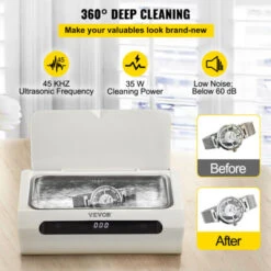 - Onde da 45 kHZ e Trasduttore da 35 W: Con un’onda a ultrasuoni da 45 kHZ, un trasduttore da 35 W e una pulizia profonda a 360°, tutte le fessure o le aree sporche possono essere facilmente pulite. La macchina per la pulizia a ultrasuoni fa brillare di nuovo occhiali, anelli, orologi e monete in pochi minuti.
