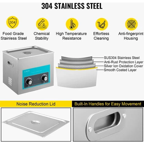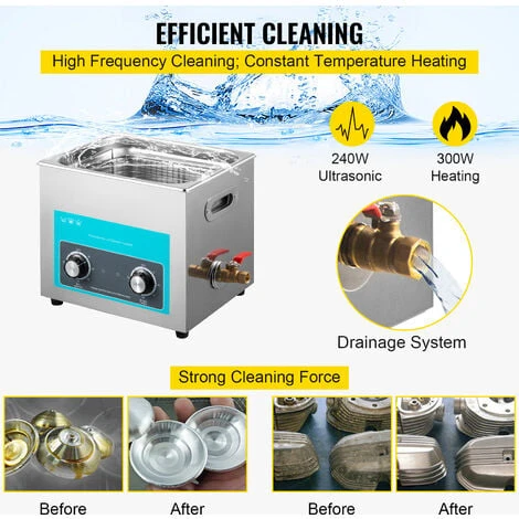 - 【MATERIALE DI ALTA QUALITA’】 – Ingresso: 220 V; Potenza ultrasonica: 240 W; Frequenza: 40 kHz; Potenza di riscaldamento: 300 W; Serbatoio in acciaio inossidabile 304, anticorrosione per diversi tipi di soluzioni. Antiruggine con tempi di manutenzione più lunghi. Ottimo prodotto per pulire le cose, sbarazzarsi di lavori manuali pesanti.