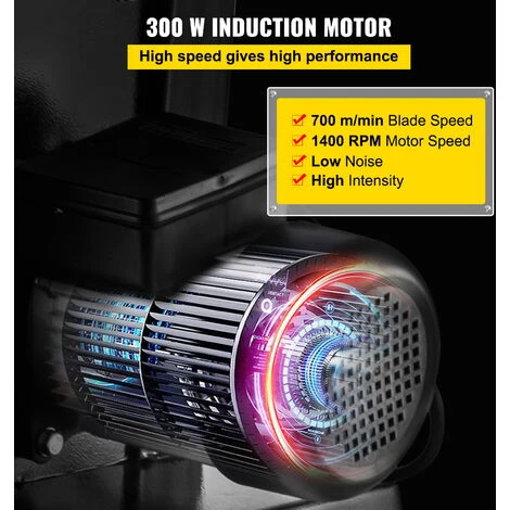 - Potente Motore da 300 W: Il motore a induzione della sega a nastro per legno con bassa rumorosità, alta efficienza e prestazioni eccellenti fornisce un’elevata velocità del motore di 1400 giri/min. Grazie al potente motore da 300 W, la segatrice può tagliare facilmente diversi tipi di legno.