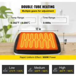 - Dimensioni piastra di riscaldamento: 12 x 10 pollici