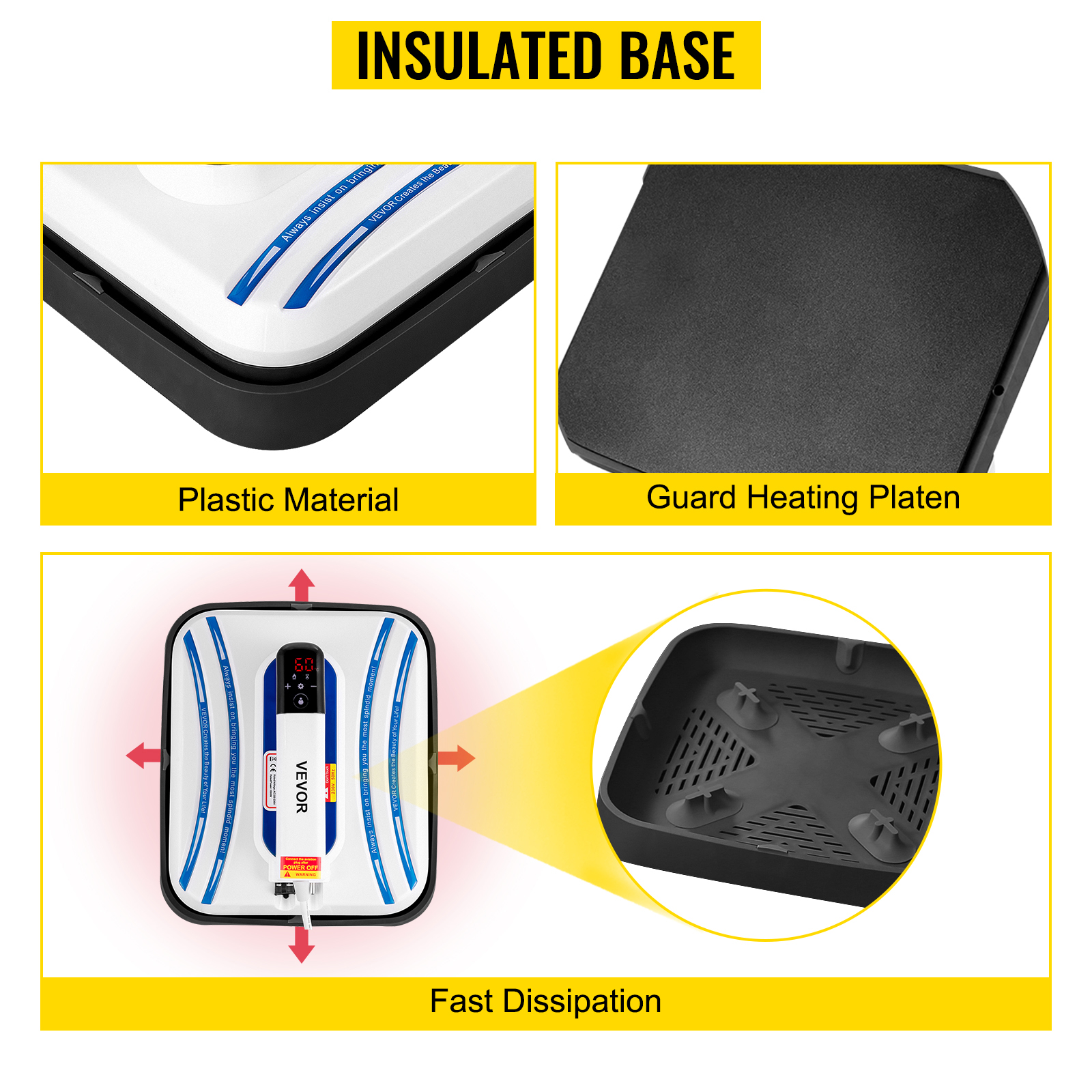 La termopressa portatile è l’ideale per l’uso domestico. Touch screen sensibile avanzato e particolari funzioni di riscaldamento migliorano notevolmente la qualità del trasferimento. Puoi utilizzare dozzine di materiali con la tua pressa facile, inclusi vinile per pressa a caldo, glitter, carta trasferibile, fiocco e così via. È compatibile con le principali macchine da stampa HTV o termoadesive ed è un vero compagno delle macchine da taglio VEVOR e delle presse a caldo più grandi, ideale per progetti di cucito e trapuntatura. Porta la tua termopressa ovunque e crea progetti e regali che rimarranno amati per tutta la vita.