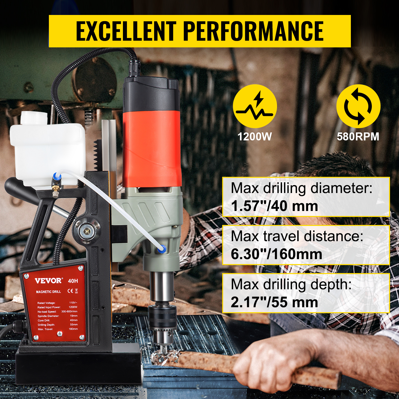 - Prestazioni Superiori: Questo trapano magnetico per impieghi gravosi da 1200 W perfora a una velocità continua di 0-580 giri/min fino a una profondità massima di 2,17″ e un diametro massimo di 1,57″. Con il suo potente motore da 2,6 A, il trapano a colonna magnetico perfora facilmente l’acciaio di qualità industriale.