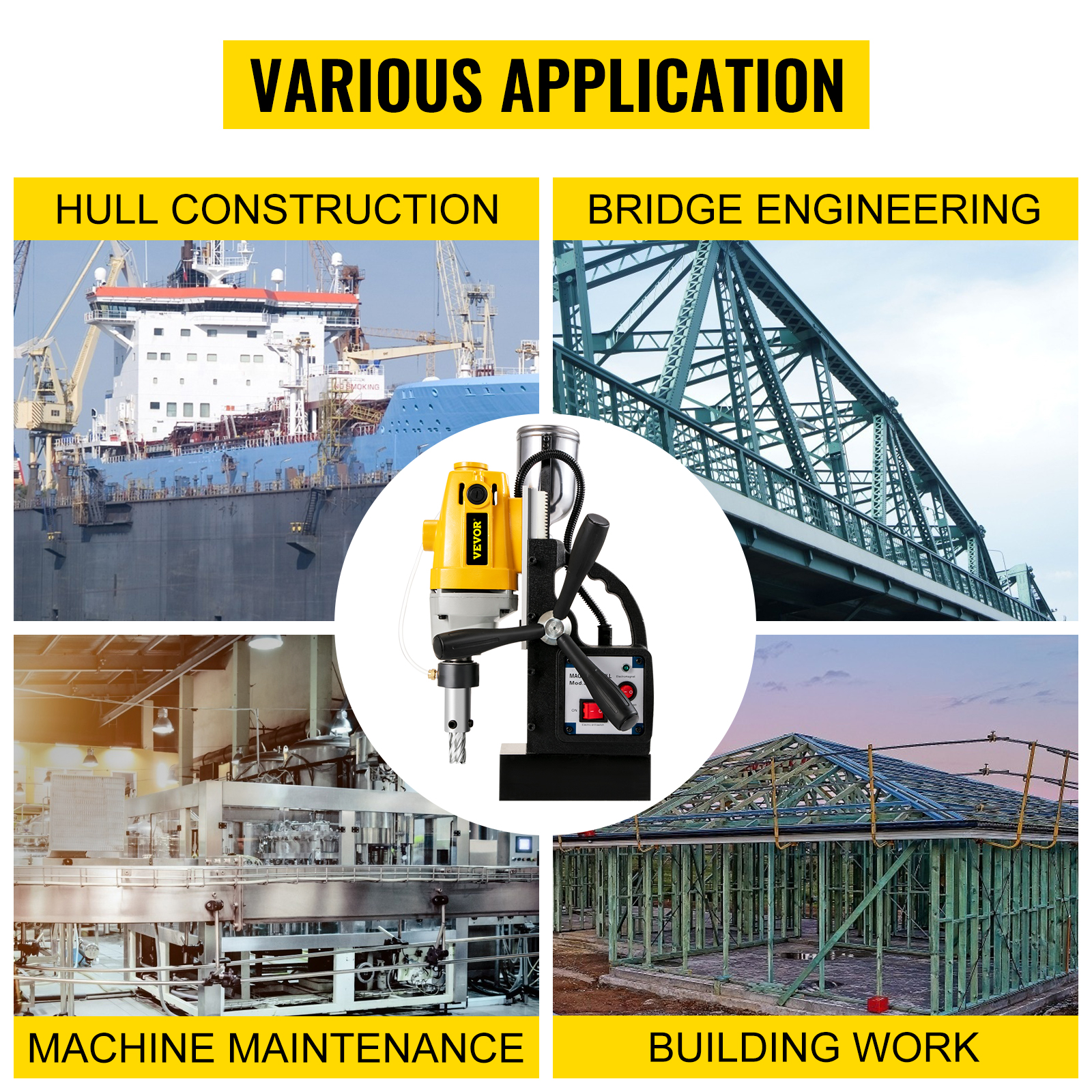 - Varie Applicazioni: questo versatile trapano a colonna magnetico è estremamente adatto per la fabbricazione industriale e dell’acciaio, la costruzione di navi o ponti, la produzione ferroviaria, la generazione di energia eolica, la costruzione di centrali elettriche, il miglioramento della casa, l’installazione di attrezzature e un’ampia gamma di altri campi.