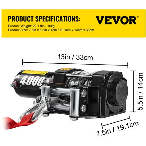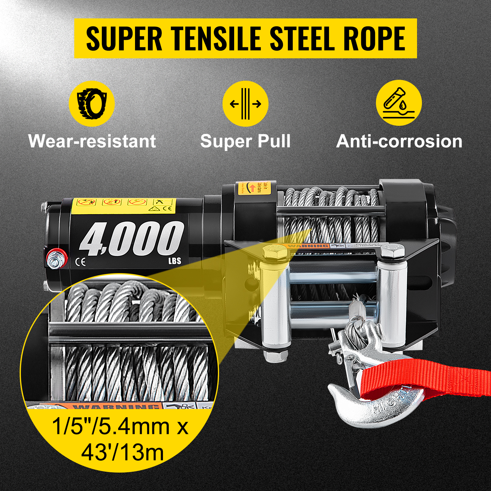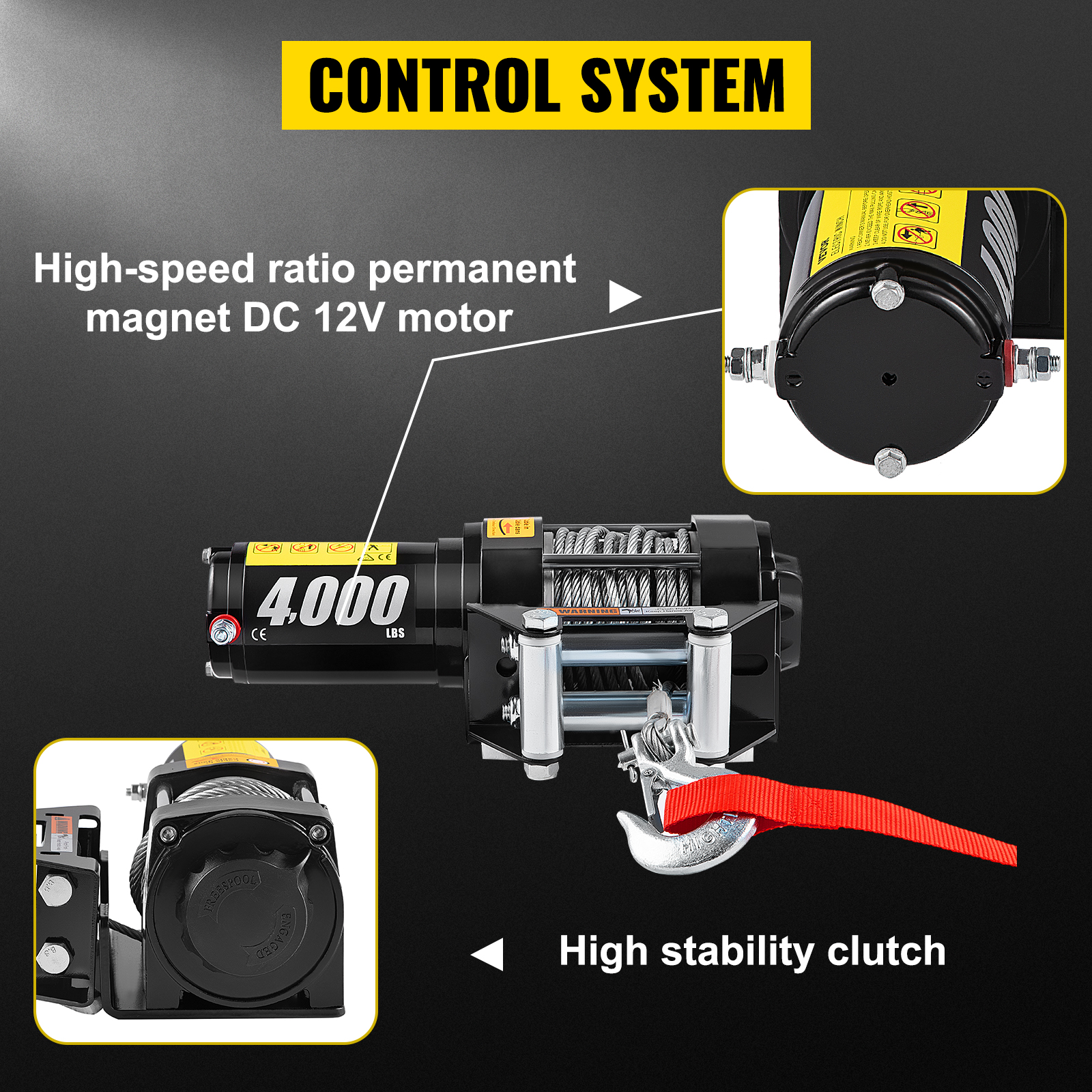 Il verricello elettrico ha una capacità di 4.000 libbre, adatto per ATV, UTV, camion, jeep, rimorchi utilitari, ecc. Dotato di una piastra di fissaggio in alluminio pressofuso resistente all’abrasione e di una scatola di controllo rinforzata, sarà il tuo assistente affidabile.