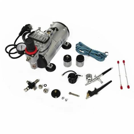 Questo set di compressori è progettato per essere utilizzato con aerografo e piccole pistole a spruzzo. Può essere utilizzato per tutte le applicazioni di aerografo, abbronzatura a spray, modellazione, trucco, tatuaggi, magliette, nail art, disegno su casco per bici, ecc.Il set di aerografo professionale è composto da un mini compressore, due aerografi e altri accessori:1. Compressore mini pistone Questo compressore a pistone senza olio con regolatore d’aria, filtro dell’aria e manometro è adatto per tutti gli aerografi con dimensioni dell’ugello di 0,2 – 1,0 mm.Caratteristiche e funzioni: * Portatile e facile da usare* Termicamente protetto*Rumore basso *Pressione dell’aria regolabile*Senza olio * Interruttore automatico on/off*Manometro pneumatico, regolatore dell’aria e filtro dell’aria*Inizia con la pressione*Lavoro potente e continuo2. Pistola spray con set a 7 pezzi monofunzioneQuesta pistola aerografo con set di 7 pezzi a una singola funzione può essere applicata per le arti commerciali, le illustrazioni, il ritocco delle foto, l’artigianato, ecc.3. Pistola a spruzzo con set di 9 pezzi a doppia funzioneL’intero set comprende un aerografo a testa fine, un 5 tubo in vinile di 5 piedi, 2 once, vasetto con coperchio, 3/4 once, vaso, chiave inglese, regolatore di propulsione e adattatore (tubo dell’aria da 1/4 “dal compressore al tubo flessibile più piccolo)4. Connettore per tubo flessibile a 3 vie con 2 tappiIl connettore può essere collegato direttamente al compressore o tra il compressore e le pistole, dando la possibilità di un massimo di 3 connessioni simultaneamente.La consegna include 1 mini compressore a pistone con regolatore d’aria, filtro aria, manometro e scatola originale, 1 aerografo con funzione singola a 7 pezzi in scatola, 1 aerografo con funzione doppia a 9 pezzi in scatola, 1 connettore del tubo flessibile a 3 vie con 2 tappi e il manuale sia in inglese che in tedesco.