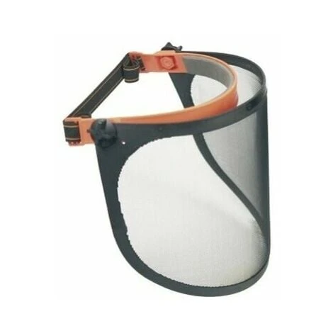Visiera con rete in plastica, telaio in materiale antiurto, schermo rialzabile.