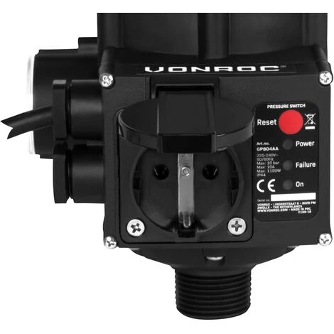Il pressostato VONROC GP804AA con protezione contro il funzionamento a secco è fornito in una scatola ecologica senza stampa a colori.