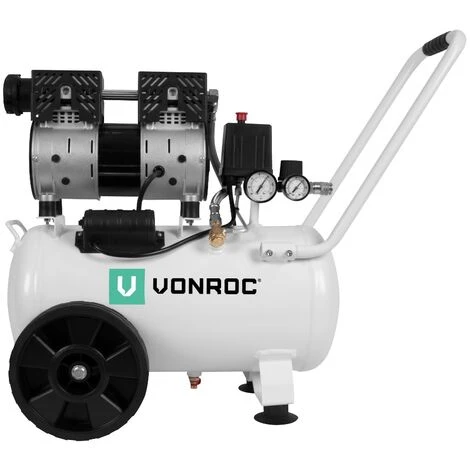 VONROC CR506AC_WHITE Compressore d’aria silenzioso 57,5Db | 24 LT – Senza olio – 750W – Bianco