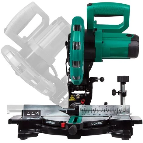VONROC Troncatrice radiale 1700W, Ø diametro 216mm. Incl. 1 lama, sacchetto di raccolta polvere, chiave a brugola, 2 estensioni da tavolo e morsetto
