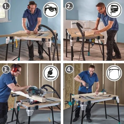 Il banco portamacchine multifunzione MASTER cut 2600 offre 6 funzioni in un unico prodotto. Può essere utilizzato con sega circolare da banco, piastra per seghetto alternativo, troncatrice, come centro di lavorazione e, con gli accessori aggiuntivi – come banco fresa e centro per sega circolare guidata. MASTER cut 2600 è ideale per qualsiasi lavoro interno. Grazie al cuneo fenditore amovibile disponibile separatamente, questo modello è uno dei pochi banchi portamacchine utilizzabili anche con seghe circolari prive di cuneo fenditore. La piastra portamacchine è dotata di un bloccaggio di sicurezza che fissa piastra e utensile in maniera affidabile. Inoltre la piastra è regolabile in altezza, consentendo così un passaggio senza dislivelli verso il piano di lavoro, anche in presenza di apparecchiature pesanti. MASTER cut 2600 è compatibile con svariati utensili presenti sul mercato di diversi produttori. L’interruttore di sicurezza posizionato lateralmente sul tavolo permette di accendere e spegnere gli utensili in maniera rapida e sicura. Quando viene utilizzato come banco sega, la guida d’arresto parallela permette tagli guidati fino a 625 mm di larghezza. La battuta angolare è dotata di elementi di compensazione e di scorrimento a molla. Il banco consente inoltre di eseguire comodi tagli angolari in serie fino a +/- 60°. I quattro blocchi di serraggio in dotazione permettono di bloccare in maniera salda i pezzi con i morsetti al profilo del tavolo. Grazie alla brugola in dotazione è possibile spostare i blocchi di serraggio per adattarli alla lunghezza del pezzo. Inoltre possono essere utilizzati come piedini se il tavolo è ripiegato, in questo modo può occupare poco spazio ed essere conservato in verticale. Con un carico massimo di 120 kg, il banco portamacchine è in grado di sopportare in modo eccellente anche i pannelli di legno massiccio. Un solo prodotto versatile che consente di effettuare in modo sicuro ed efficiente qualsiasi lavoro domestico.
