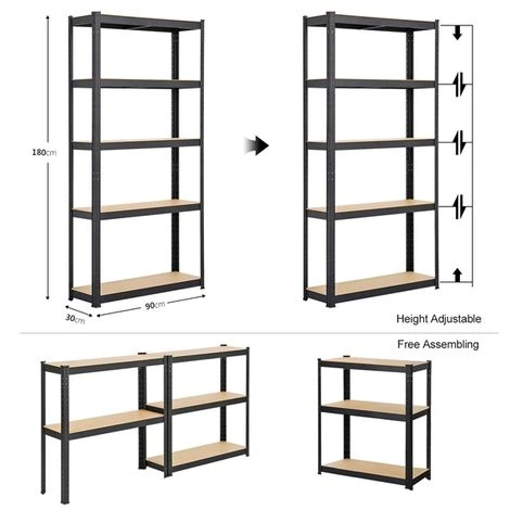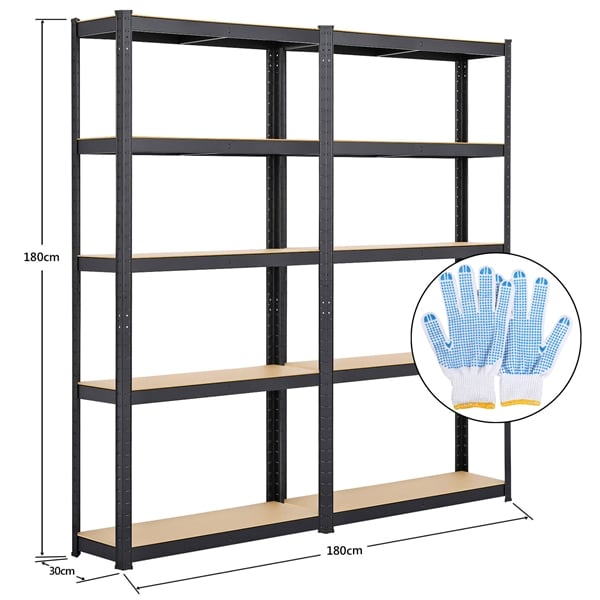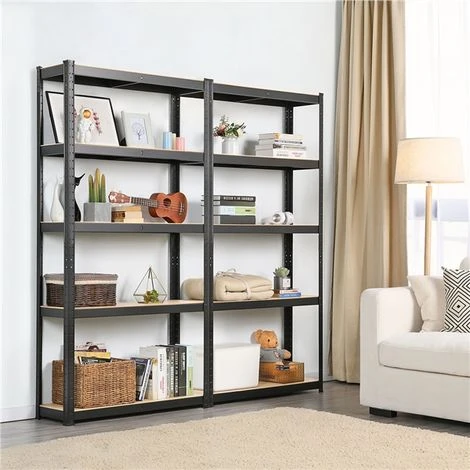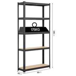 ✔️ Robusto e Durevole: venduto in un set da 2 scaffali a 5 riapiani,la scaffalattura presenta una struttura in acciaio antiruggine per garantire una lunga durata. La trave di supporto centrale su ogni ripiano mantiene i ripiani di legno MDF più saldamente per una maggiore stabilità.Consente una elevata capacità di carico fino a 175 kg per ripiano.