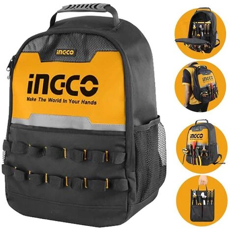 Zainetto portautensili professionale Ingco HBP0101 con telaio rigido per un’apertura facile e avere un accesso immediato. Sacca portattrezzi con tasche esterne per aumentarne la capacità e la versatilità.